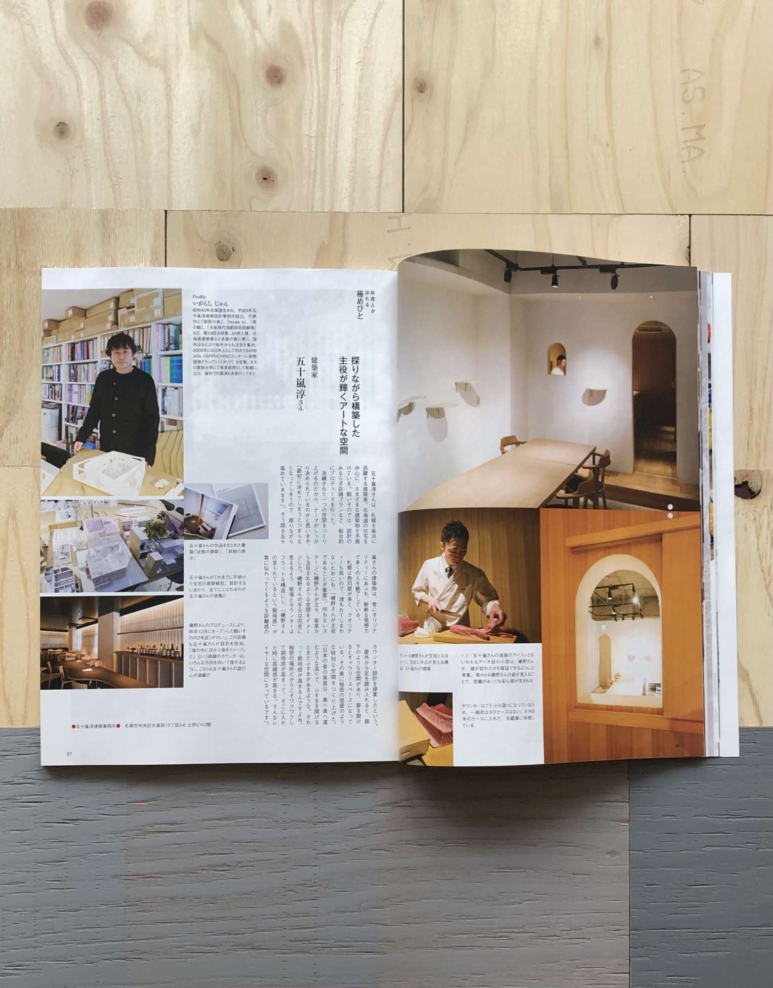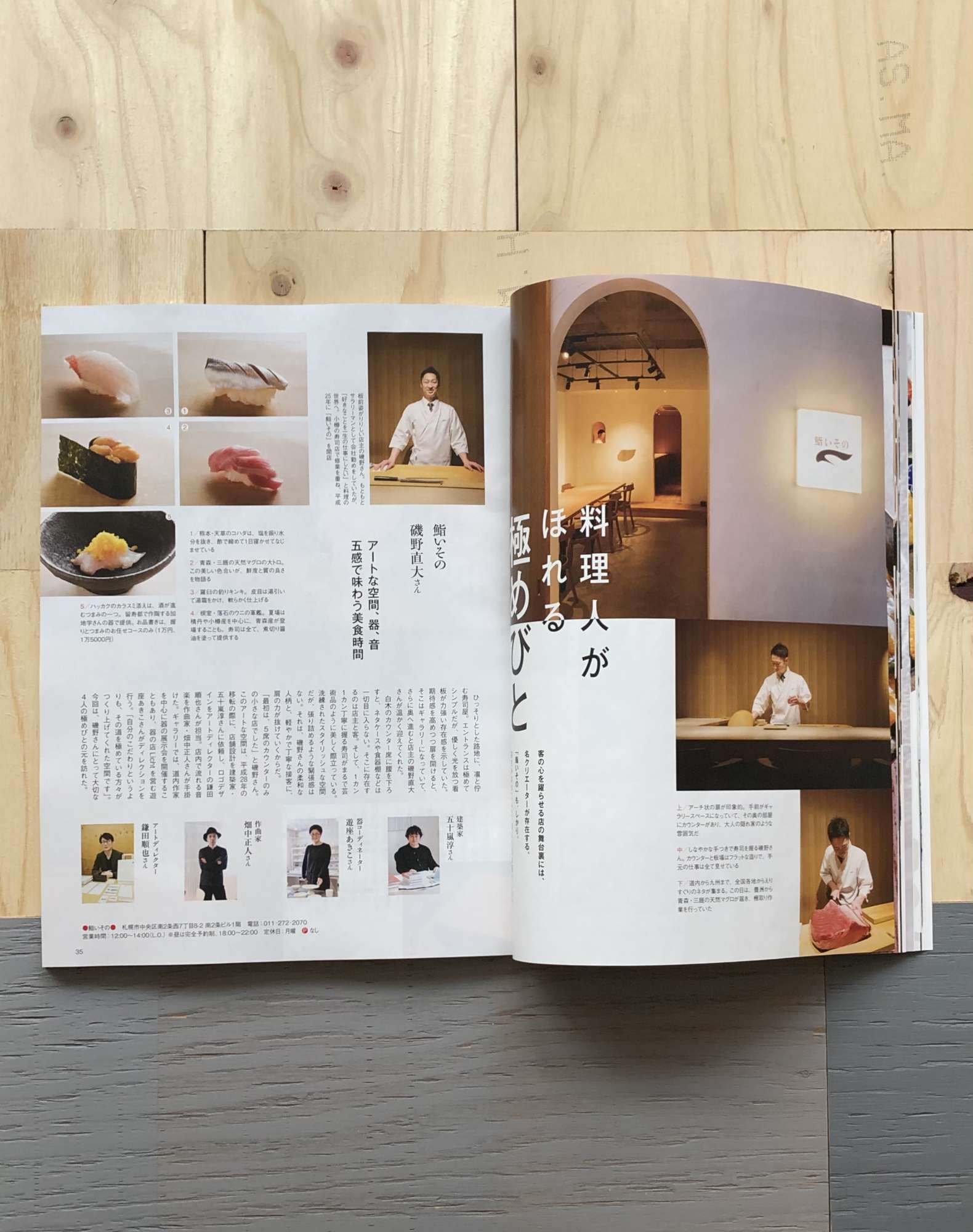 当社にて設計デザインした「鮨いその」が、北海道の情報誌「HO」にて、